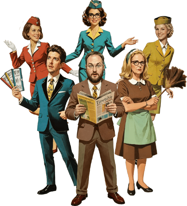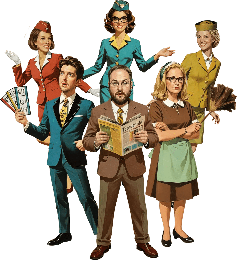 Then the unthinkable happens: new faster planes, delays, and sudden schedule changes. The arrivals start overlapping… and Bernard’s “system” becomes full-scale overbooking.